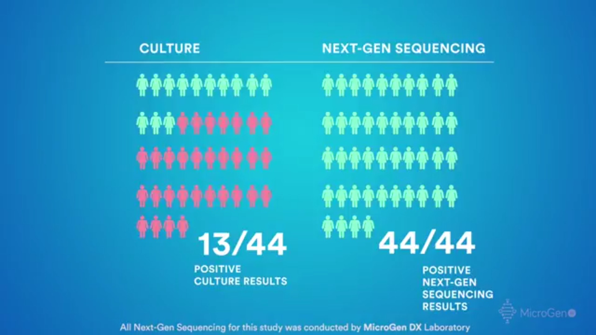 “Of the 44 preliminary patients, 13 of the 44 had positive culture results, 44 out of 44 patients in the Next-Gen Sequencing study had positive results.