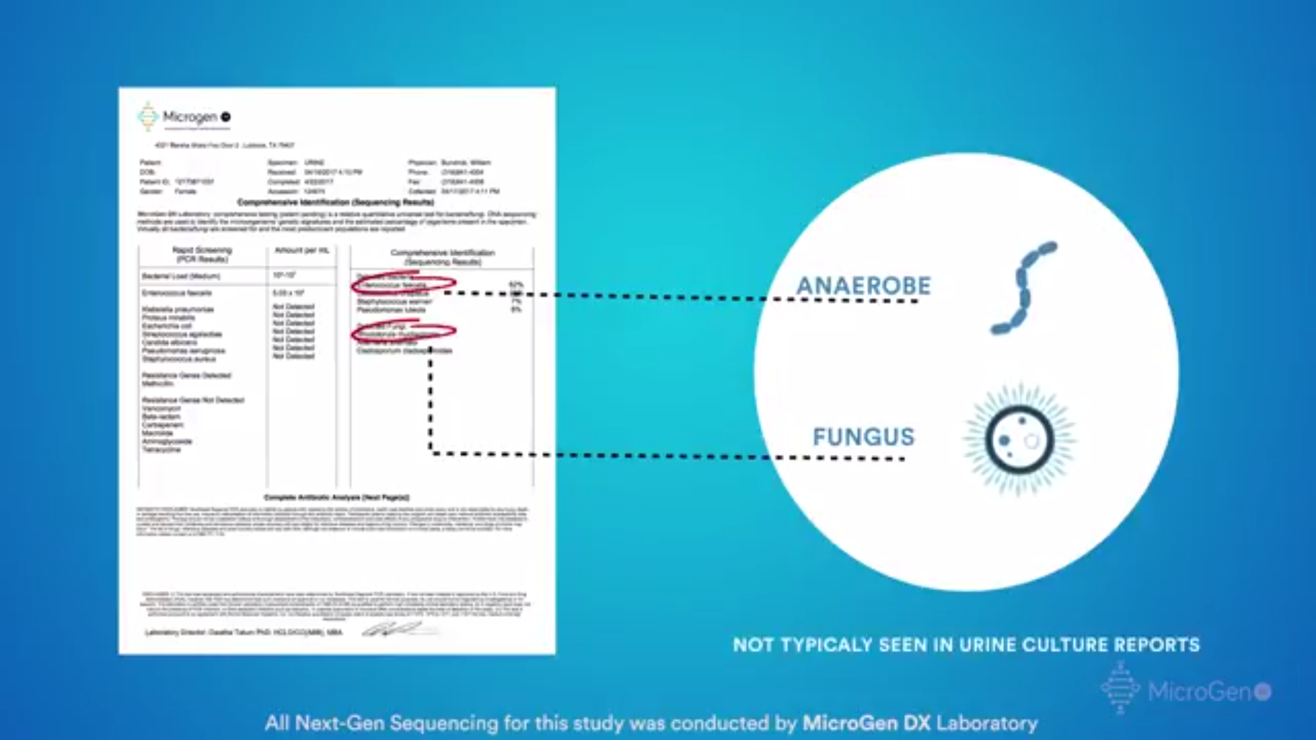 “Despite the fact that the criteria has usually been 10 to the seventh colony forming units as a diagnosis for a UTI, when it comes to culture and sensitivity reports, we have found even those patients that have less than 10 to the seventh, whether it’s 10 to the third, fourth or fifth, their symptoms will improve markedly on those results. All patients’ urines were sent for both culture and sensitivity results and Next-Gen Sequencing. Approximately half initial preliminary patients were sent in each group, approximately 25 in each group. What we found in that is a significant diagnostic difference when it comes to Next-Gen Sequencing.