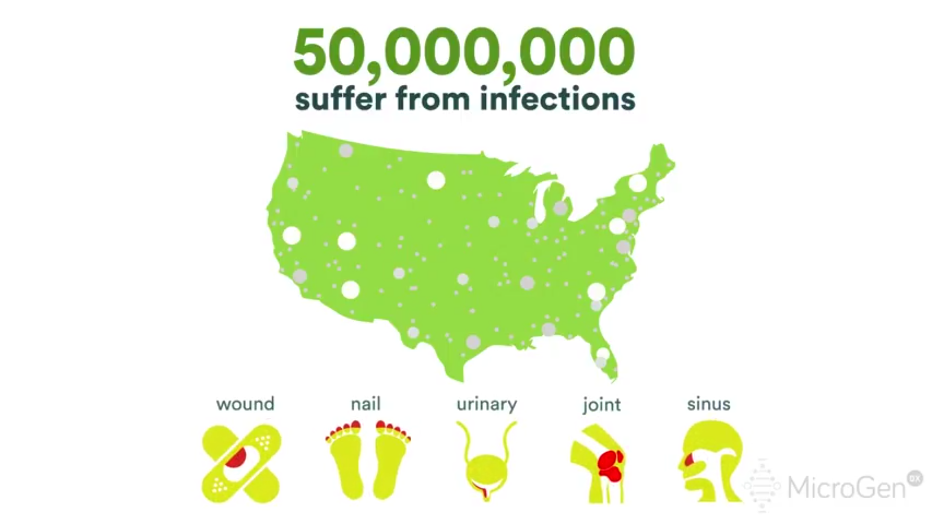 More than 50 million Americans suffer from infections every year, including Wound, Nail, Urinary, Joint and Sinus Infections. Research has shown infections that are not cleared can move to a biofilm phenotype creating a barrier to healing and lead to a chronic infection disease state.